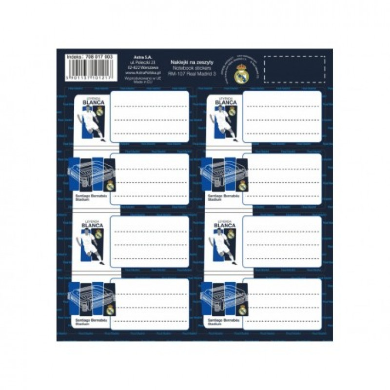 Samolepiace štítky Real Madrid sú perfektným riešením pre každého futbalového fanúšika. S ich pomocou ľahko označíte školské pomôcky, aby sa už nikdy nezamenili s cudzími.